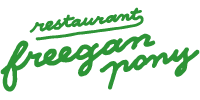 Le Freegan Pony est un restaurant éphémère, né en 2014, qui cuisine et sert des plats avec des produits issus des invendus du marché de Rungis. Les repas sont “vegan”, c’est-à-dire sans produits d’origine animale et le restaurant s’installe dans des endroits inoccupés de Paris, et avec des meubles issus de la récupération.
