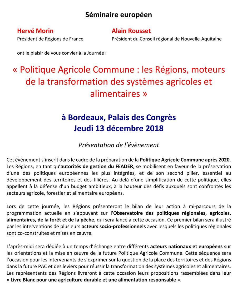 Notre partenaire Régions de France organise un séminaire européen pour promouvoir le rôle des Régions dans la transformation du système alimentaire et défendre leurs positions dans la perspective de la révision de la PAC.