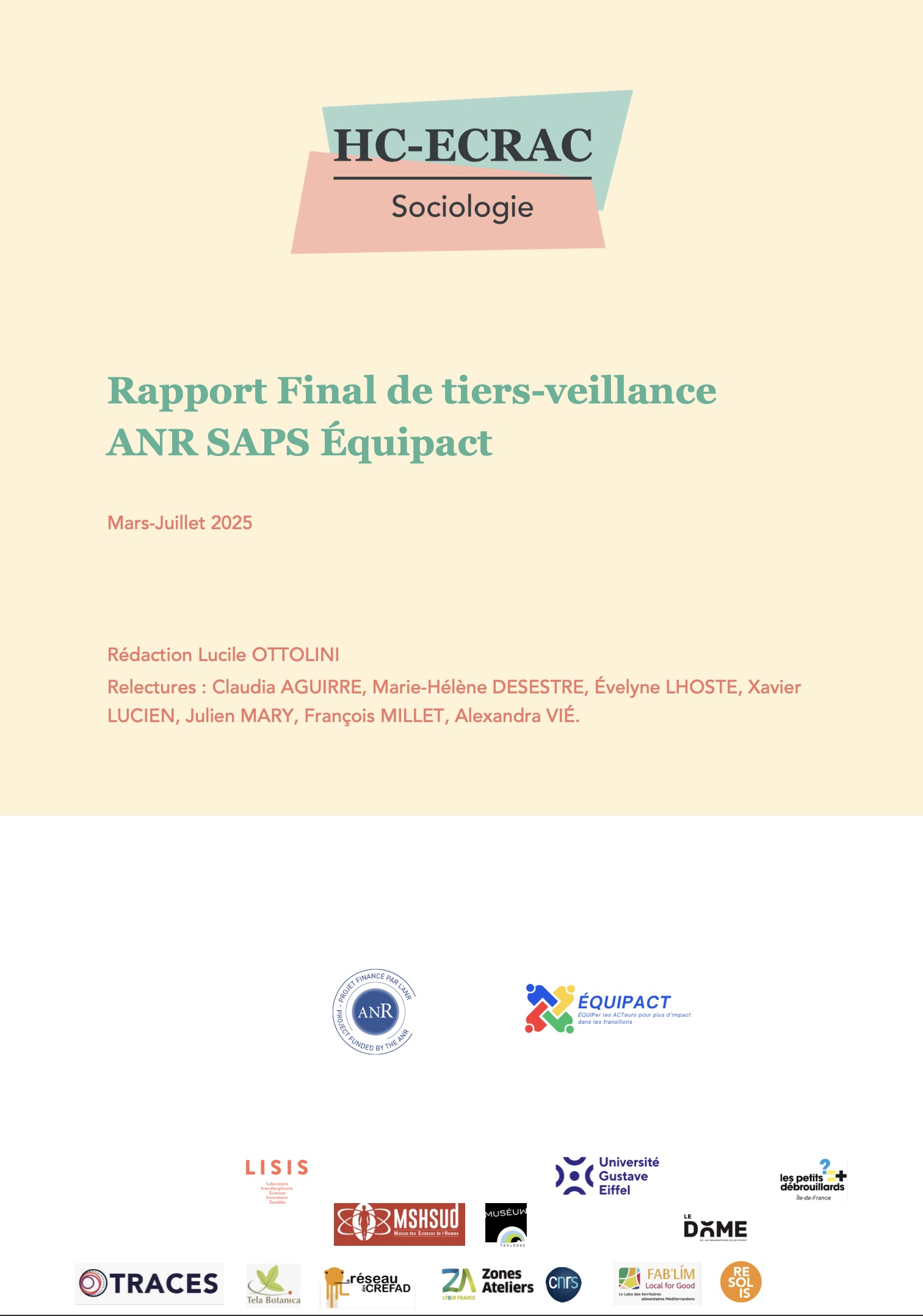 Rapport final de TIERS-VEILLANCE du programme Équipact